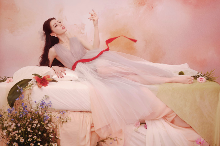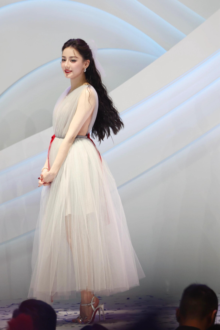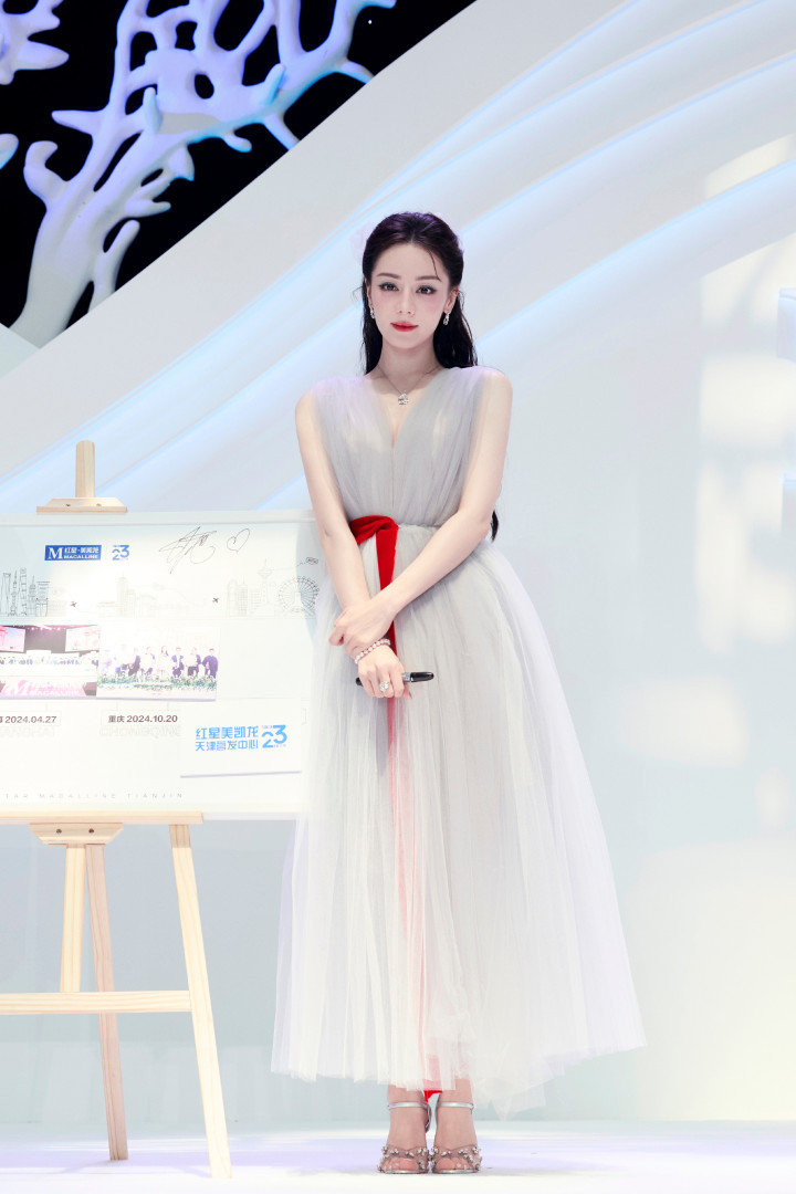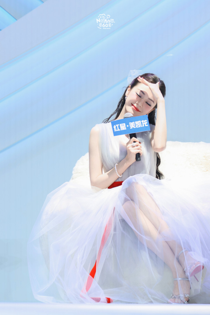 迪丽热巴线下活动美照抓拍,一席纱质长裙显身材,姿态优雅笑容迷人